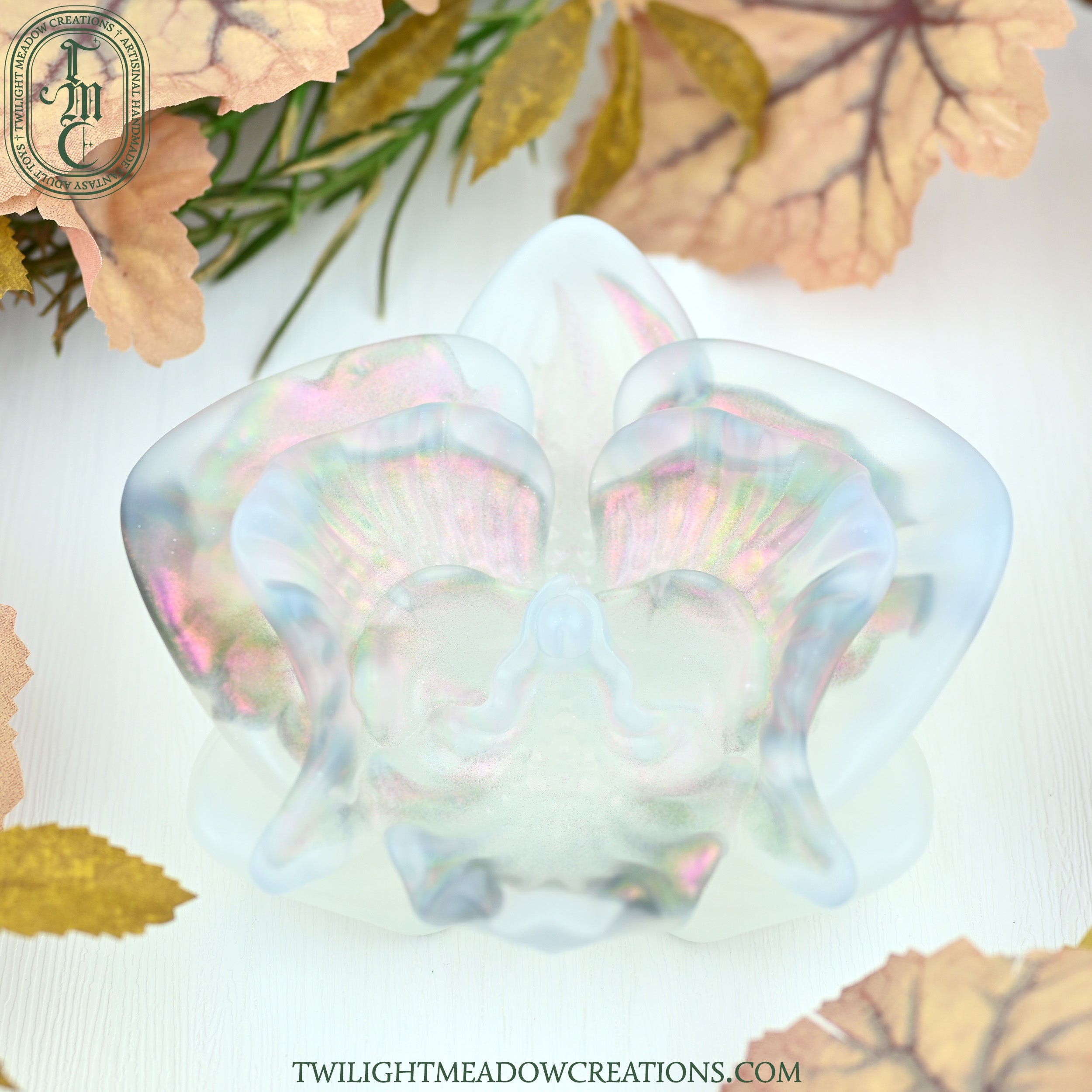Special considerations: Crystalline is our name for toys poured in Near Clear silicone. They feature amazing clarity, (sometimes) see-through effects, intense shimmer and depth, but need some extra considerations. See our FAQ for details.